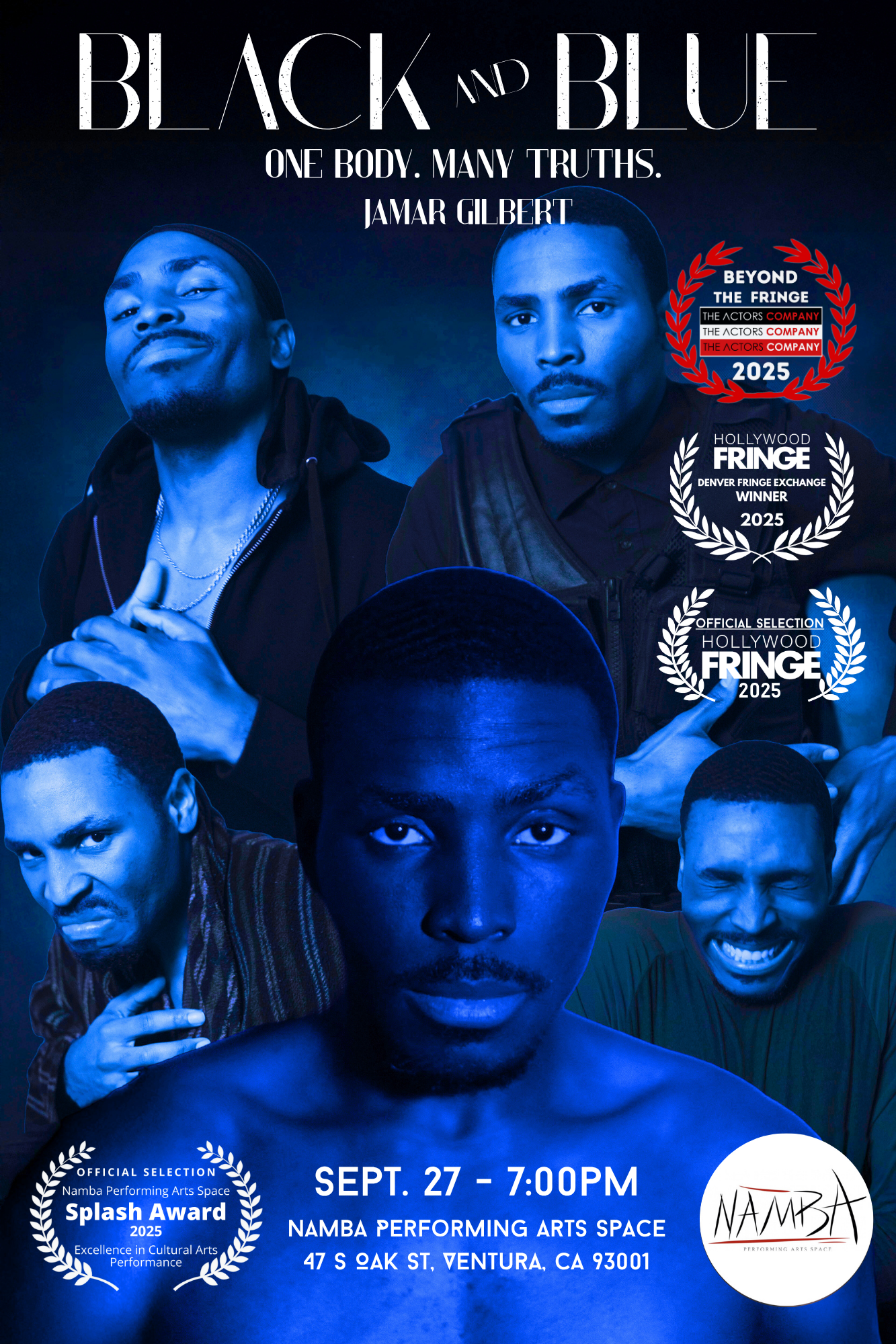 Black and Blue is a visceral solo performance that fractures one Black man into four unforgettable voices—each grappling with survival in a country that can’t decide what to do with him. There’s Rukus, the old head who believes dignity is the only way to stay alive. Malik, the firebrand who dares to speak rage out loud. Officer Dennis, the dutiful protector haunted by guilt. And Julian, a wide-eyed boy just beginning to see the cracks in his world. Together, they wrestle with an impossible question: Is there a right way to be Black in America? What unfolds is part sermon, part scream, part elegy—and all heart. Laced with humor, pain, and poetic truth, Black and Blue invites audiences into the collision of identity, legacy, and resistance. Not to answer the question— But to sit in it. To feel it. To not look away.